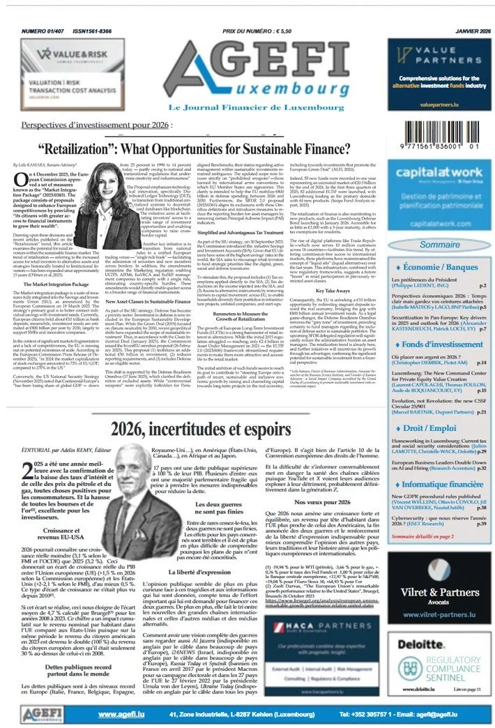 Nous publions régulièrement nos analyses et réflexions dans des supports académiques et professionnels : AGEFI Luxembourg et Business Science Institute